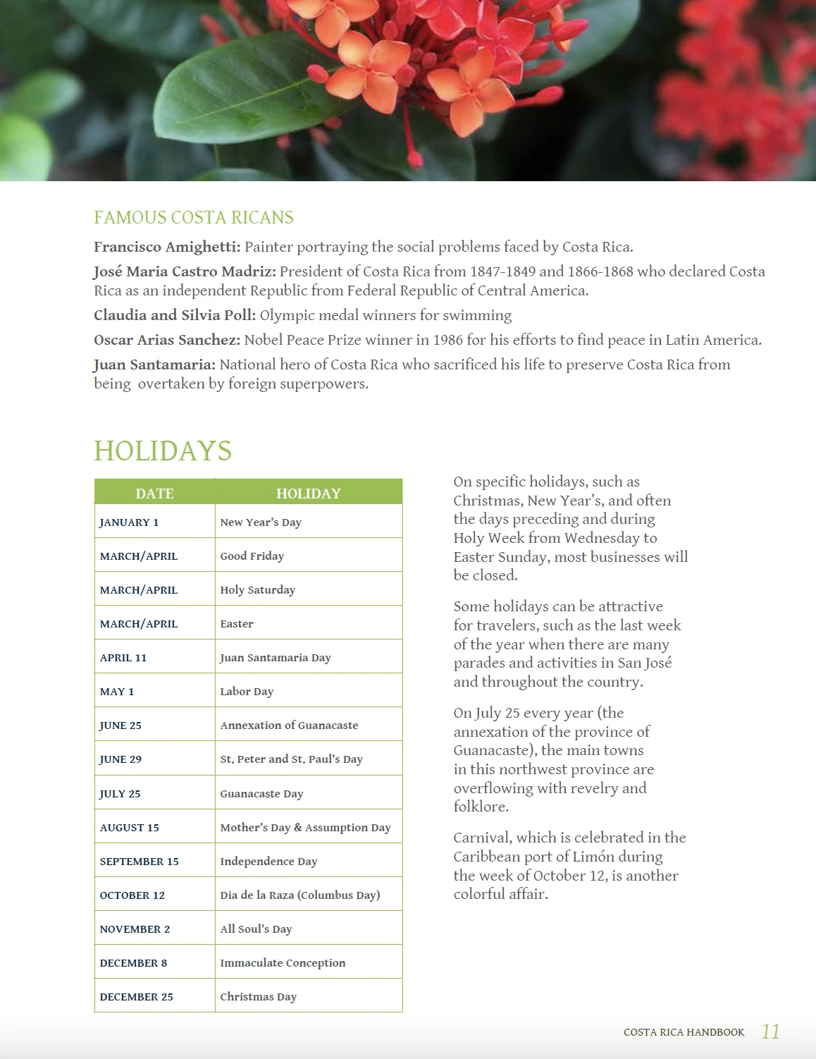 Beyond her natural parks and world-famous surf, Costa Rica appeals to all the senses. Discover the details of her culture, history, geography, customs and immigration, infrastructure and transport, and so much more.